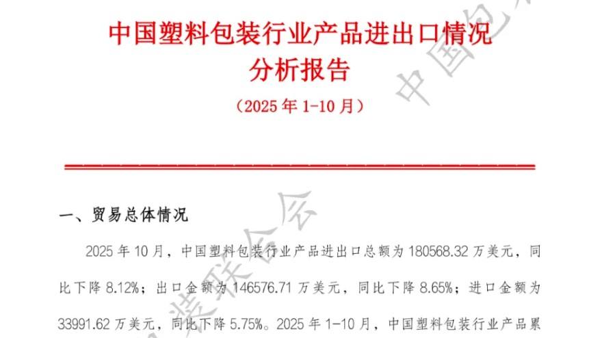 中国塑料包装行业产品进出口情况分析报告(2025年1-10月)