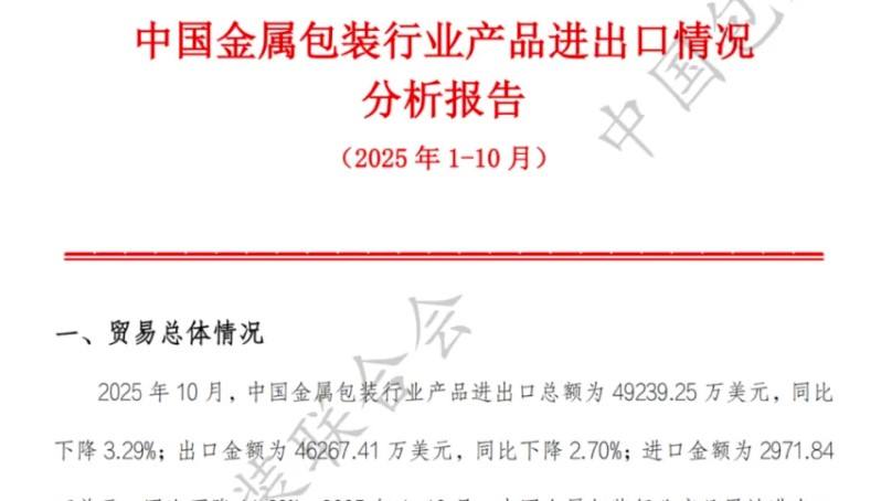 中国金属包装行业产品进出口情况分析报告(2025年1-10月)